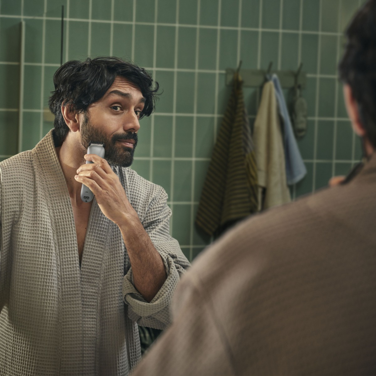 7 herramientas y accesorios para todas las necesidades de grooming (cuchilla de recorte, recortador para nariz y orejas, peine recortador para zonas sensibles 1mm, peines para barba incipiente 1 y 2 mm, y peines para barba 3 y 5 mm).