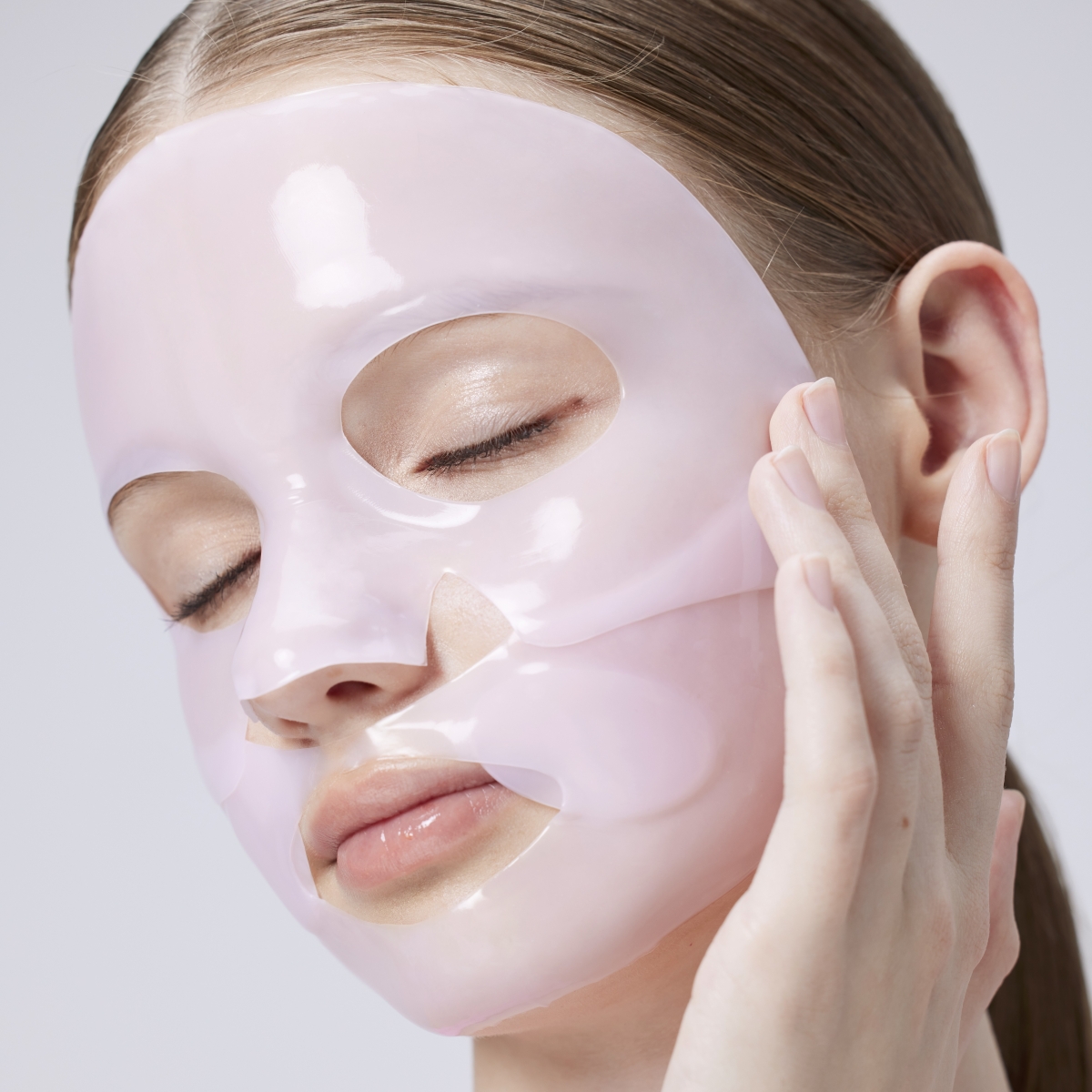 Máscara premium de hidrogel que transforma la piel cansada en firme, radiante e intensamente hidratada.